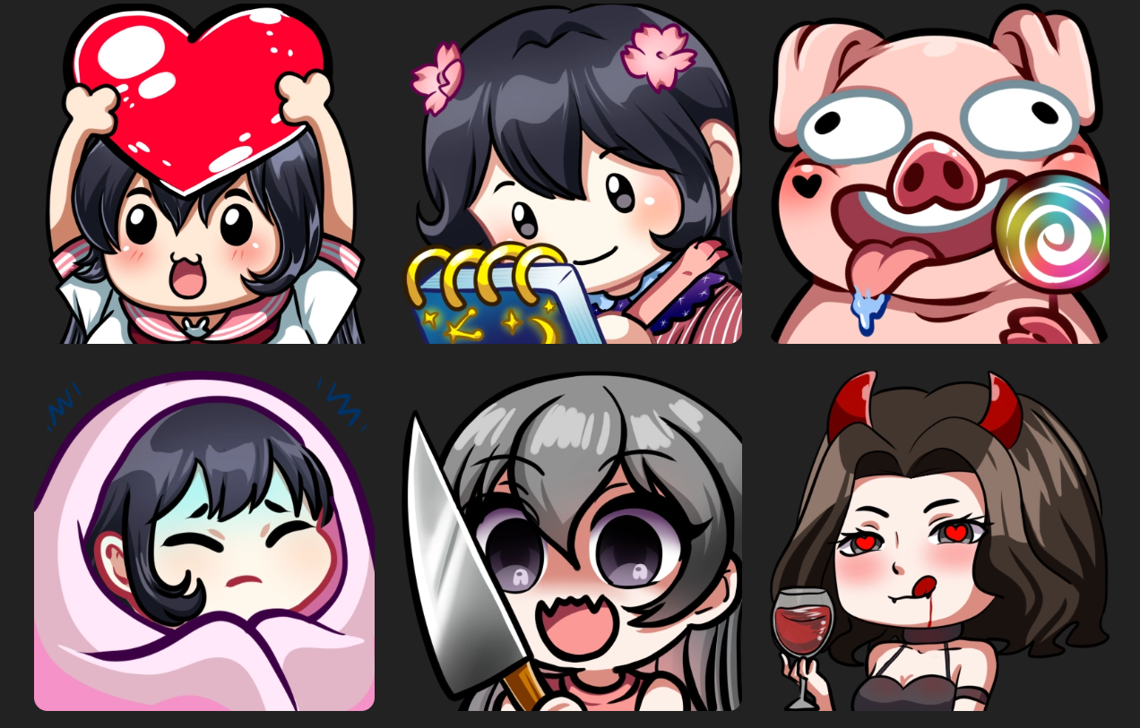 Los emotes $13usd cada uno si son originales y tienen que ser dibujado desde cero, en oferta tengo 5 emotes x 32usd, los emotes de oferta son emotes genericos. Pedir ejemplos para esta oferta.